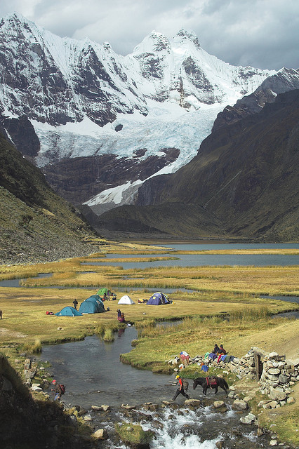 Jahuacocha campsite in Cordillera Huayhuash, Peru